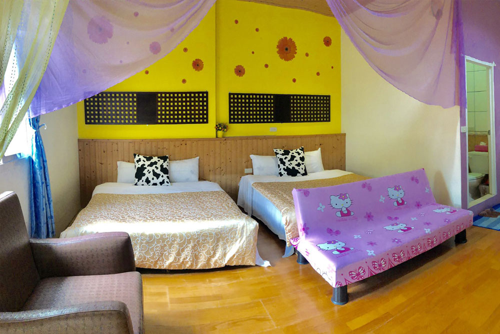房型種類 平日 假日 定價 水仙花雙人房 $2600元 $3000元 $3500元 向日葵四人房 $2800元 $3800元 $4500元 地中海薔薇景觀房(2人入住) $2500元 $3000元 $3800元 地中海薔薇景觀房(4人入住) $2800元 $3800元 $4500元 浪漫薰衣草景觀房(2人入住) $2500元 $3000元 $3800元 浪漫薰衣草景觀房(4人入住) $2800元 $3800元 $4500元 包棟(4間房) $12000元 $16000元 $20000元 加一間超過14位以上 $14000元 $18000元 $22000元